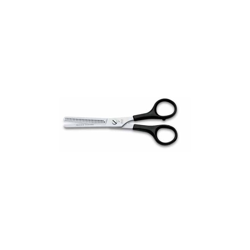Thinning Scissors RELAX ES 28 Tres Claveles, for domestic use and professional academician. Made of stainless steel of high performance 420 of hardness HRc54. He has 28 teeth in an edge. Available averages: 6 ". Recommended for the academic use