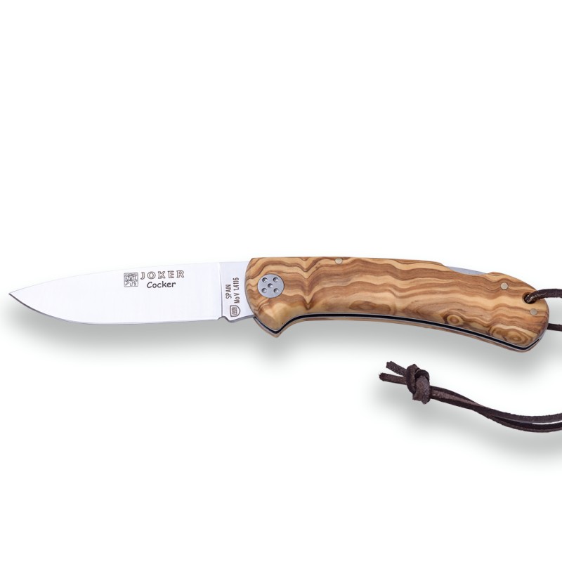 The Joker Cocker olive wood bushcraft knife NO134 is a high-quality handcrafted tool, designed and manufactured in Albacete, Spain, by the renowned brand Joker. Ideal for outdoor activities such as hiking, hunting, or camping, it stands out for its robustness, functionality, and aesthetic appeal.