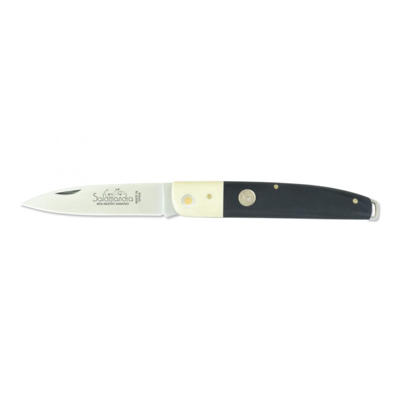 Salamandra 105251 Pocket Knife Handle Combined JUMA, manufactures handmade in Spain (Albacete), Stainsless Steel Molybdenum Vanadio. Handle with stainless steel liners and Juma (the Juma is a material consists mixture of different mineral-based composite materials with a resin component).