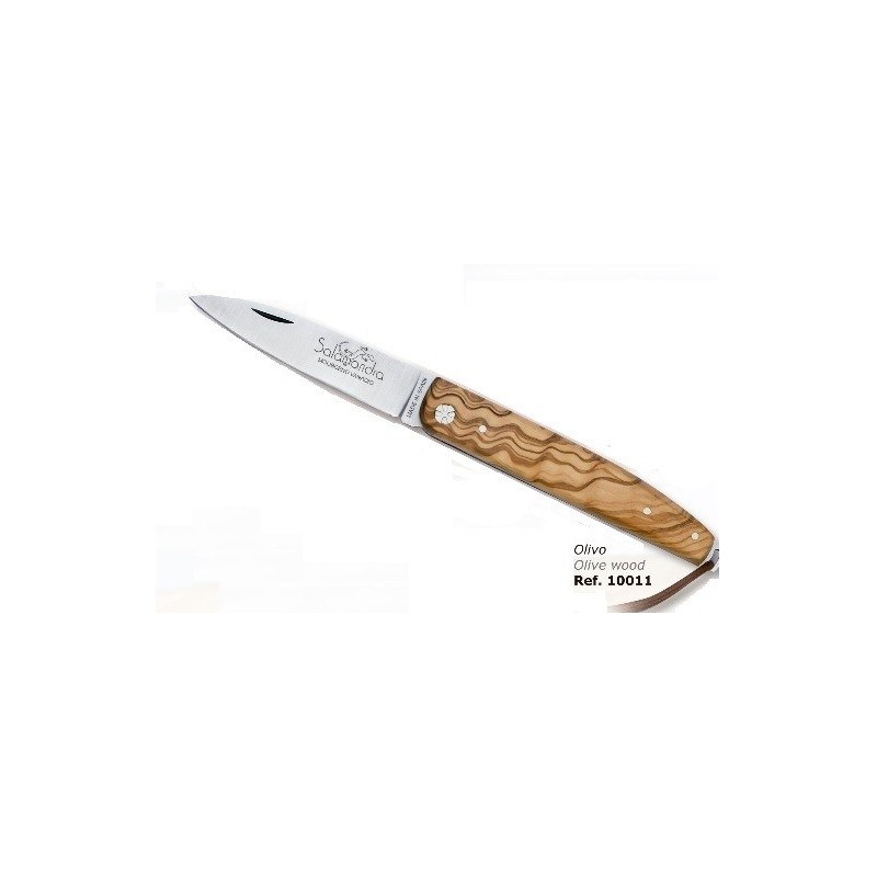 Salamandra hand made in Spain pocket knife with Mova stainless steel blade 7.5 cms and olive wood handle, with stainsless steel decorations in the spring.