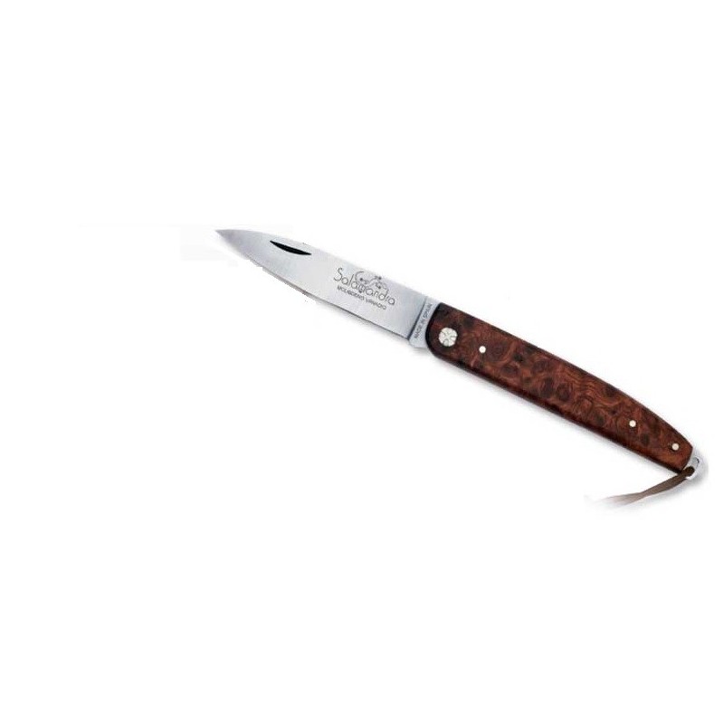 Salamandra hand made in Spain pocket knife with Mova stainless steel blade 7.5 cms and amboina Wood handle, with stainsless steel decorations in the spring.