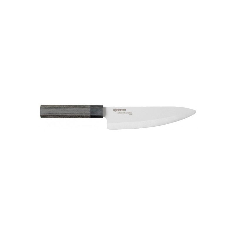 Kyocera FJ-170WH Fuji Chef Knife 17 cm, Kitchen knife used for cutting vegetables, meat or cheese of medium or small size. Confortable ortogonal handle in Pakkawood.