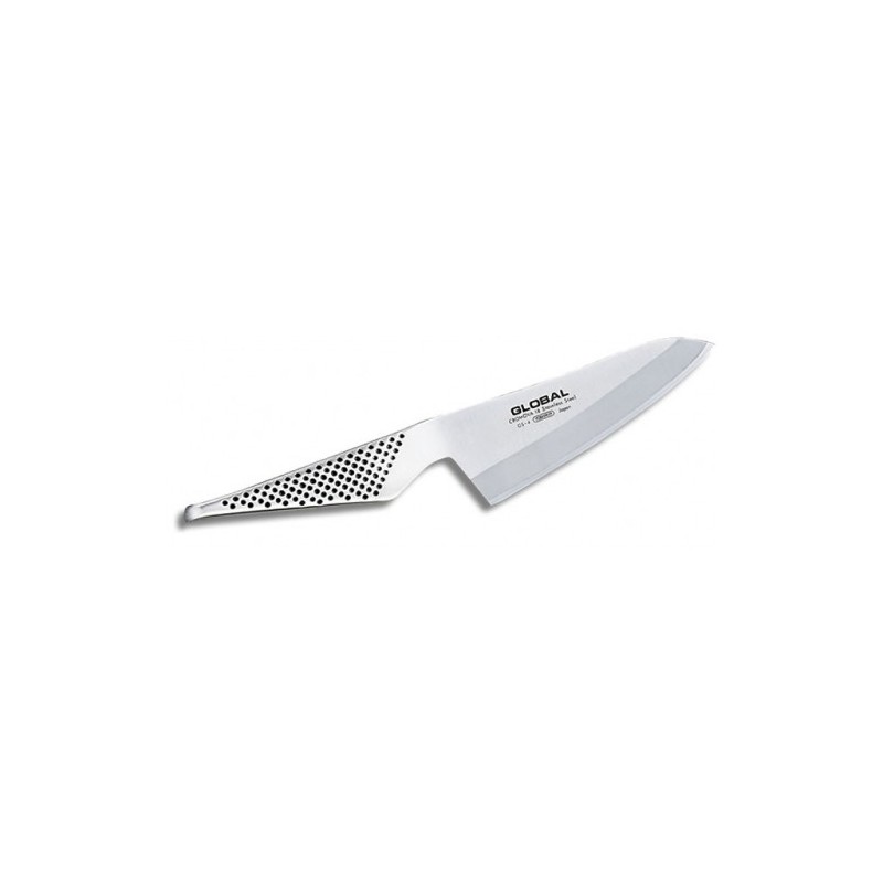 Global GS-4 Oriental Deba Knife has a single edged knife which id perfect for preparing smaller fish and other foods. This blade should only be sharpened on a stone. The GS Series is a classic collection of smaller knives for general preparation with hollow weighted handles.