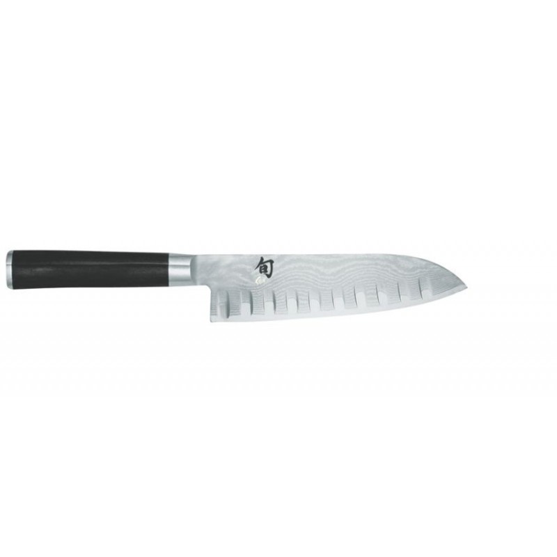The Kai Shun Damascus santoku Knife with hollow edge DM-0718 has a 18 cm blade with a 10.4cm handle, and is very handy for chopping and slicing vegetables. All Kai Shun Japanese Knives have a ‘chestnut’ shaped handle which has been ergonomically designed to fit comfortably in your hand. The handles are made from fine laminated Pakka wood and has a full tang construction.