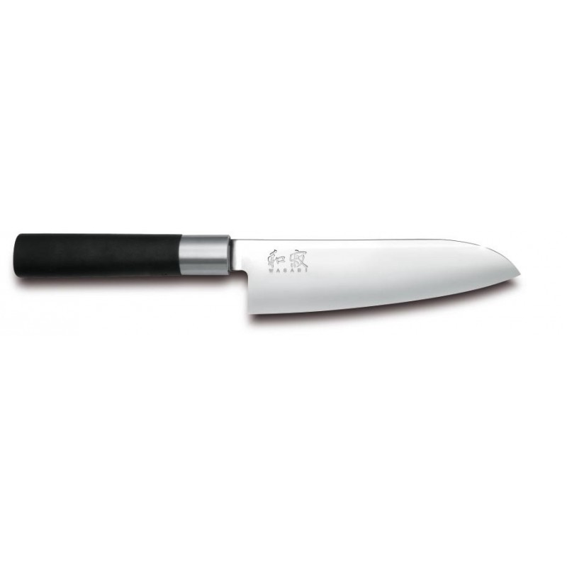 KAI 6716S Wasabi Black Santoku Knife, 16.5 cm, Handle 12,6 cm, polished stainless steel. Special knife for cutting vegetables. The handle of Kai knives Wasabi series is formed by bamboo powder.