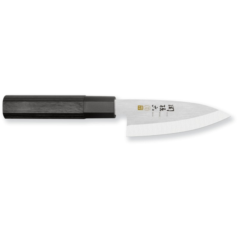 KAI AK-1100 Seki Magoroki Kinju Deba 10.5 cm knife. The Deba are knives specially designed for cleaning fish, both for filleting and gutting and for cutting the bone thanks to its powerful and thick stainless steel blade with high carbon content. Hexagonal laminated wood handle.