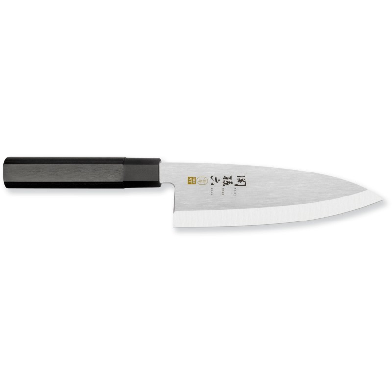 KAI AK-1100 Seki Magoroki Kinju Deba 18 cm knife. The Deba are knives specially designed for cleaning fish, both for filleting and gutting and for cutting the bone thanks to its powerful and thick stainless steel blade with high carbon content. Hexagonal laminated wood handle.