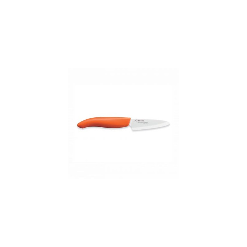 Kyocera FK-075WH-or Ceramic Paring Knife 75 mm, its sheet is made of zirconium oxide, thus giving its edge an excellent durability Ceramic Kyocera knives are resistent and doesn´t loose their cutting capacity. The result is a sharpened blade that keeps its edge until ten times more than a steel knive.