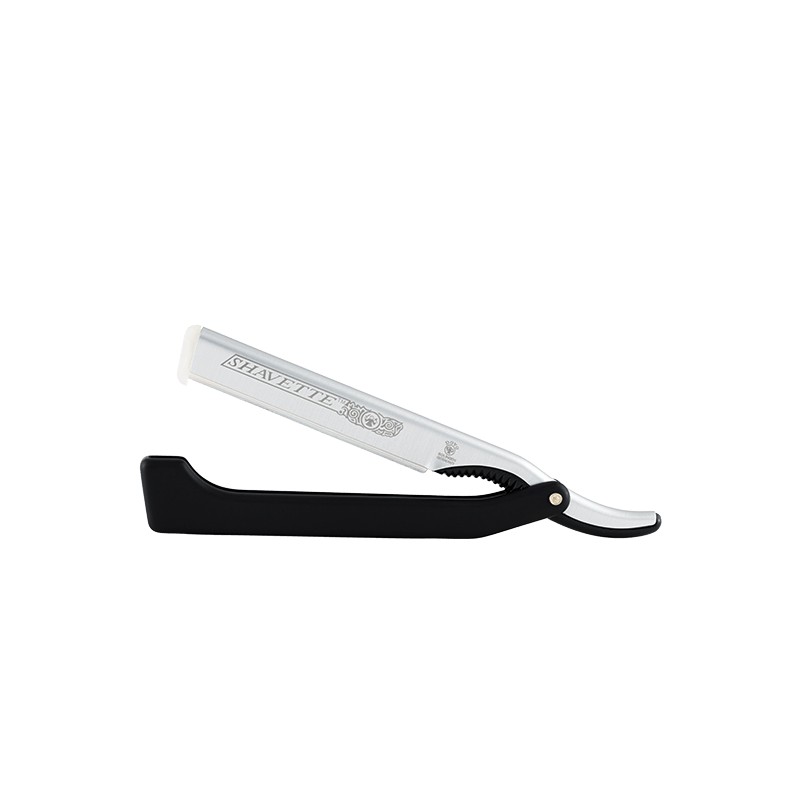 Shavette razors are interchangeable blades that are very popular in barber shops as each customer has a new blade. They are also a great resource to get started in shaving with a razor without having to invest in a traditional barber knife and a setter, this razor has a long blade so it looks more like a classic barber knife.