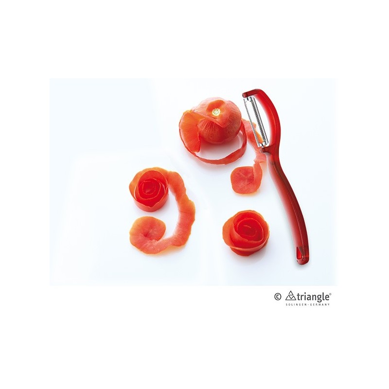 Pelador de tomates con cuchilla microdentada y oscilante, es excelente para pelar facilmente frutas y verduras con piel blanda, como tomates kiwis, peras,etc. Fabricado en acero inoxidable de primera calidad.