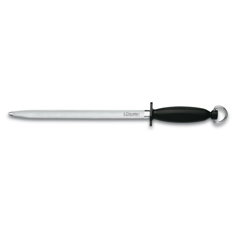 3 Claveles 1604 Chaira Oval Profesional, 30 cm reforzada de cromo duro y con forma ovalada para el afilado de cuchillos. Dispone de 30 cm de longitud. Su mango es de propileno inyectado en color negro y dispone de anilla para colgar.