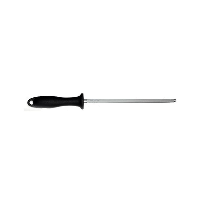 Chaira ovalada de cromo Fischer de fabricacion Francesa, para uso domestico con 20 cms de longitud y con mango inyectado en color negro.