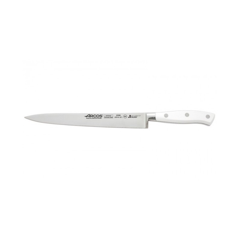 Arcos Riviera blanc Cuchillo de Filetear 20 cm. Es un cuchillo para perfecto para filetear carnes y pescados facilmente. Hoja hecha de acero inoxidable forjado NITRUM®.