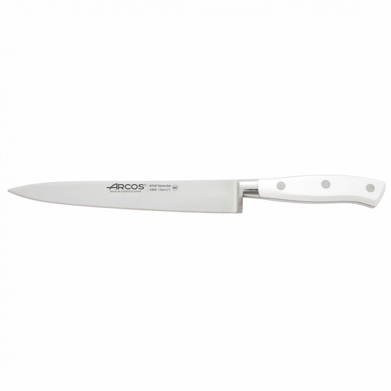 Arcos Riviera blanc Cuchillo de Filetear 17 cm. Es un cuchillo para perfecto para filetear carnes y pescados facilmente. Hoja hecha de acero inoxidable forjado NITRUM®.