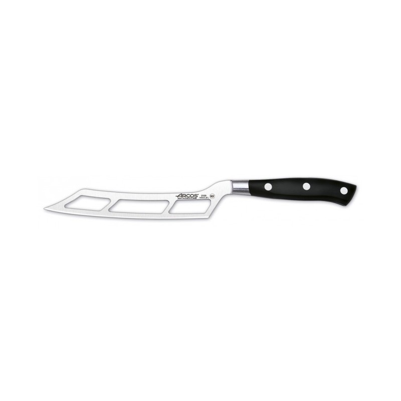 Arcos Riviera Cuchillo de Queso 14 cm, es un cuchillo para cortar quesos blandos y cremosos. Hoja hecha de acero inoxidable forjado NITRUM®, el exclusivo acero Arcos de alto rendimiento que garantiza una mayor durabilidad del filo.