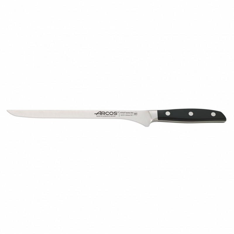 Arcos 161900 Manhattan Cuchillo Jamonero Flexible 25 cm de hoja, cuchillo fabricado en una sola pieza de acero inoxidable forjado NITRUM® y mango de POM de color negro.