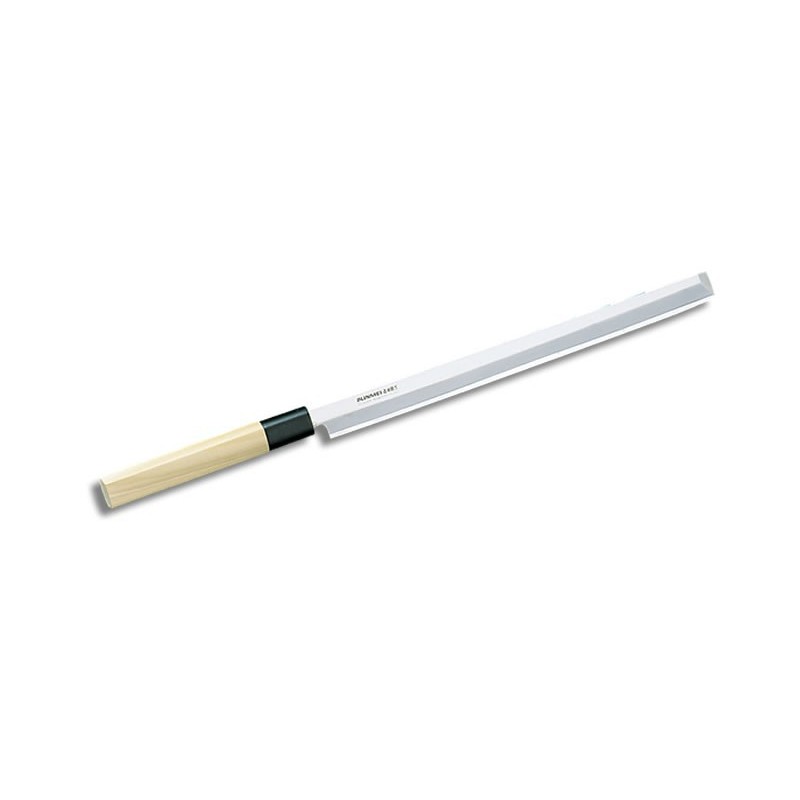 Bunmei 1803/270 Cuchillo Tako Sashimi de 27 cms de hoja, con un diseño típico de mango de madera de bambú y de punta cuadrada, es un cuchillo perfecto para cortar pulpo, de ahi su nombre (Tako significa pulpo e japones). Especialmente diseñado para cortar y filetear todo tipo de alimentos.