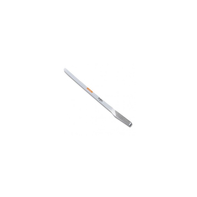 Cuchillo jamonero Global G-10 de 31 cms con hoja flexible. Como su nombre indica este cuchillo jamonero Global G-10 se utiliza para cortar jamón y piezas de carne. La longitud de su hoja es de 31cms. Tambien es usado para cortar piezas de Salmón.