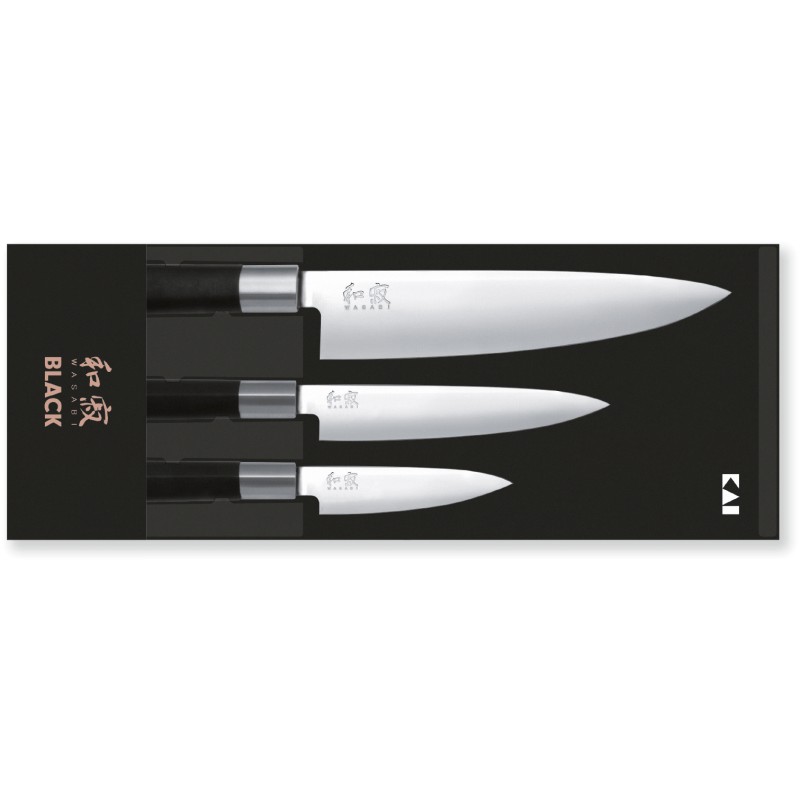 El set de cuchillos KAI WASABI BLACK de 3 piezas incluye todo lo que un cocinero exigente necesita.