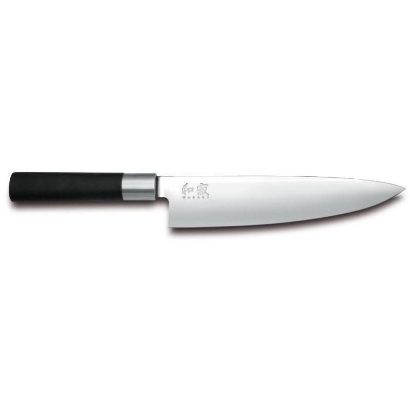 Kai 6720C Wasabi Black Cuchillo japones de Cocinero con 20 cm de longitud de hoja y acero inoxidable pulido. Cuchillo especial para cortar verduras. El mango de los cuchillos Kai serie Wasabi esta formado por polvo de bambú.