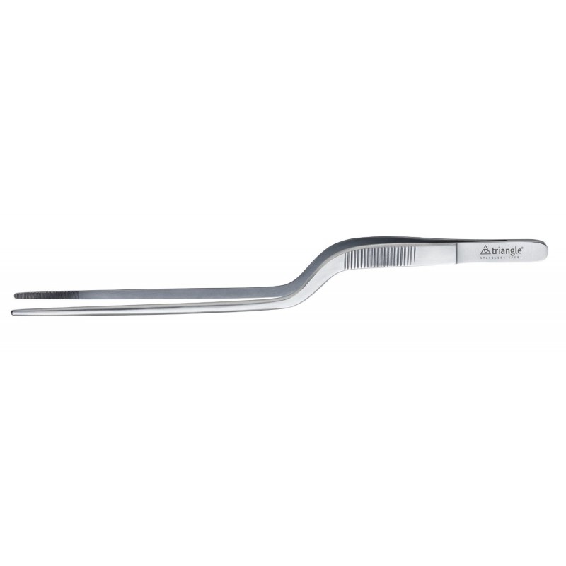 Pinzas acodada para emplatar, decorar y servir platos. Es ideal para servir sushi y pequeños alimentos troceados. Pinzas gourmet Triangle con 20cms de longitud.