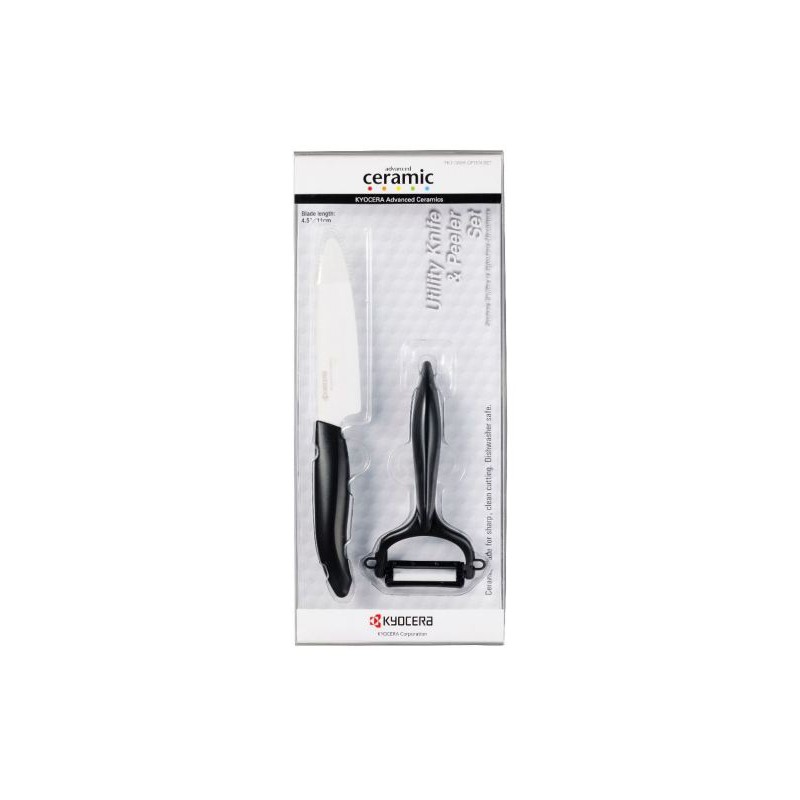 Kyocera - Set de 2 piezas especial para regalo de la serie Kyocera Gen. Este conjunto contiene un cuchillo de frutas y verduras FK-110WH y un pelador ceramico CP-10 NBK negro.