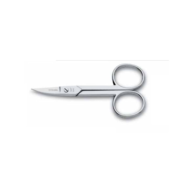 Tijera de uñas de hoja curva fabricada por 3 claveles. Disponible en las medias de 10cms y 11cms. El acabado es niquelado.
