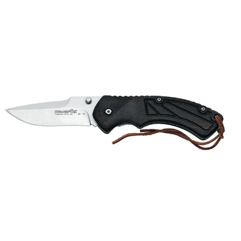 Navaja Táctica italiana BLACKFOX BF-75. Hoja es de acero inoxidable 440. La empuñadura de madera de sandalo sistema de apertura facil con una sola mano. Orificio en la empuñadura para un cordón.