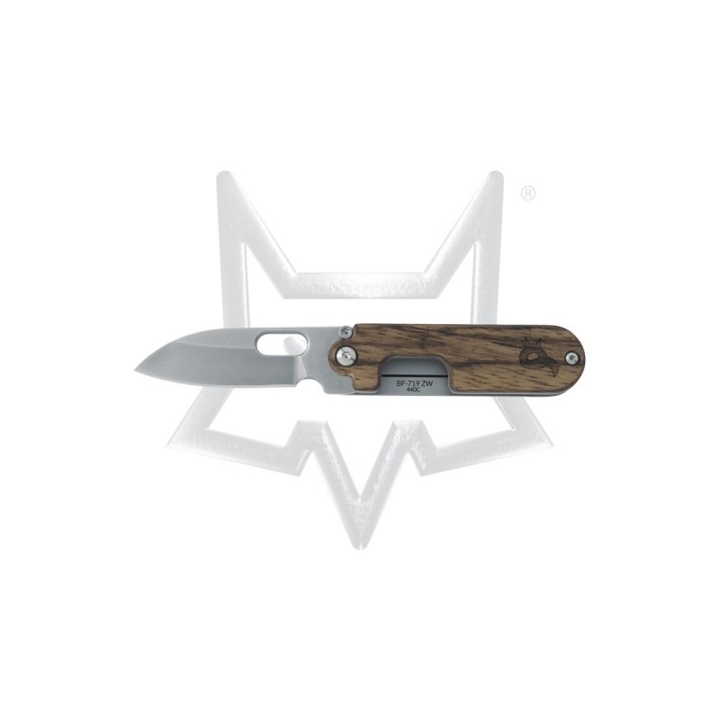 Navaja diseñada por Serge Panchenko para Black Fox, construida en acero inoxidable 440C con clip para cinturón de acero 420J2B y mango de madera de cebrano. Su pequeño tamaño la hace ideal para el bolsillo o para colgarla del cinturón, con una afilada y funcional hoja con gran dureza (HRC 55-57) para cortar todo tipo de materiales.