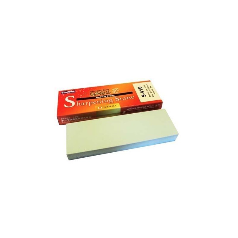 Naniwa S-410 Piedra de afilado al agua de grano 1000 es excelente para afinar y pulir el filo de los cuchillos en buen estado. Es usado despues de utilizar los granos 220 o 400. medidas 210 mm x 70 mm x 20 mm.