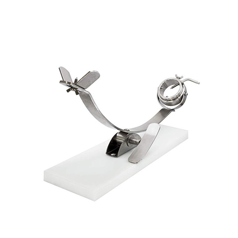 Soporte jamonero profesional completamente en acero inoxidable, giratorio y eje de corredera. Facilita poder girar el jamón sin tener que soltarlo. Pincho en forma de "U" para un mayor agarre del jamón.