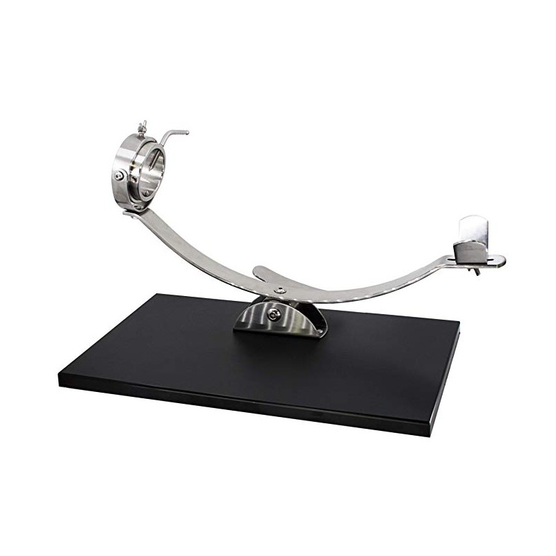 Soporte jamonero profesional completamente en acero inoxidable, giratorio y eje de corredera. Facilita poder girar el jamón sin tener que soltarlo. Pincho en forma de "U" para un mayor agarre del jamón.