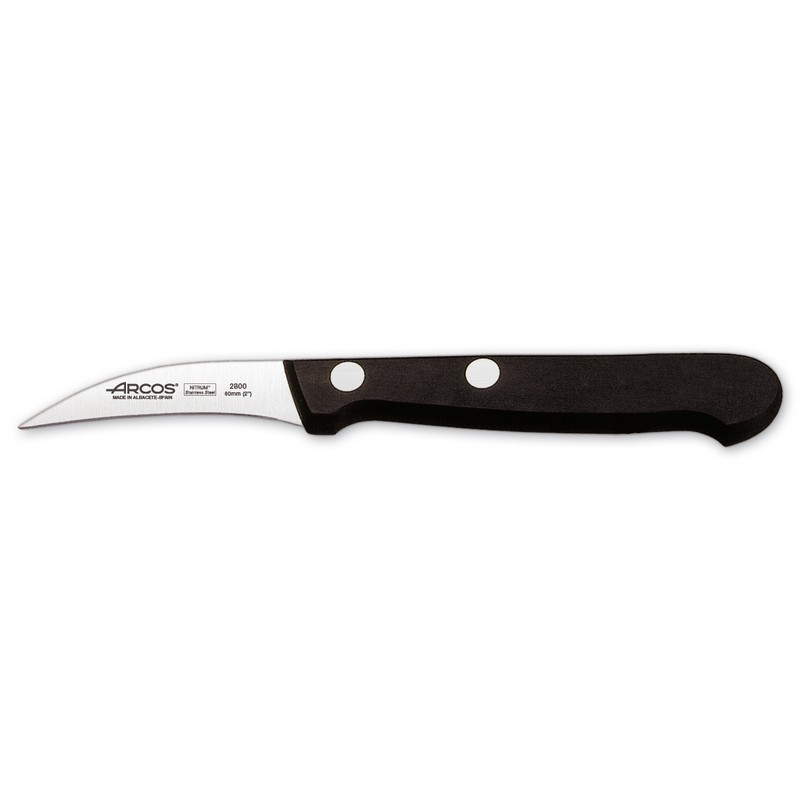 Cuchillos Arcos mondador curvo con 6 cm, hoja de acero inoxidable de alto rendimiento y durabilidad NITRUM®, Es un cuchillo pequeño de cocina de hoja corta y manejo fácil que se utiliza principalmente para pelar, cortar y tallar frutas y hortalizas.