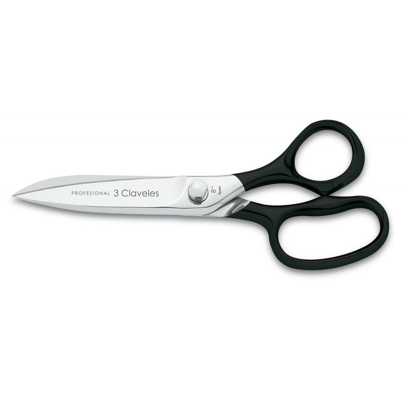 3 Claveles Ciseaux de tapissier émaillé 8", sont 3 ciseaux de tapissier en métal émaillé Claveles de 20 cm de longueur totale, finis en acier poli et avec des poignées émaillées noires.