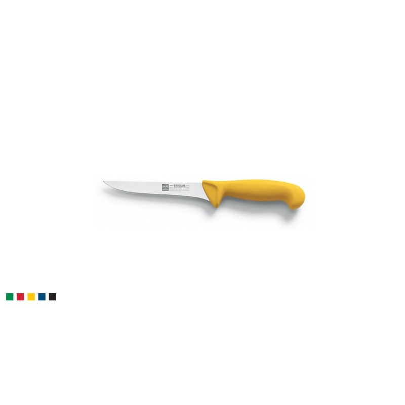 Un couteau étroit pour désosser avec une manche injectée, de SanJorge-Sico. Des tailles disponibles de feuille dans 13cms, 15 ms et 18cms.