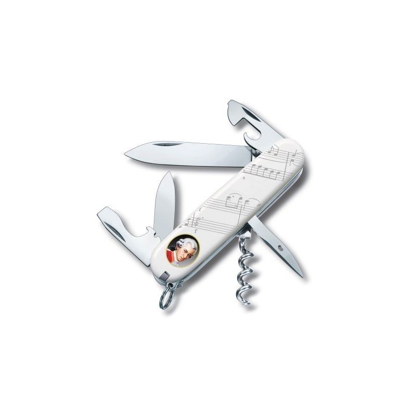 Couteau Victorinox Spartan édition Mozart de caches blanches avec l'image de Mozart. Victorinox Spartan est l'outil idéal pour la vie de tous les jours, pour peler les câbles, ouvrir les boîtes de conserve, les bouteilles ou visser ce dont vous avez besoin.