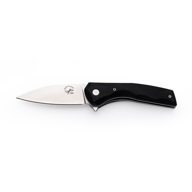 Couteau Salamandra TEMIS manche G10, Couteau fabriqué en Espagne par Alfa Cutlery. Comme le reste des couteaux de la série TEMIS, il est fabriqué en acier BÖHLER N690 et comprend également un revêtement PVD qui offre une plus grande résistance à l'utilisation et à l'usure.