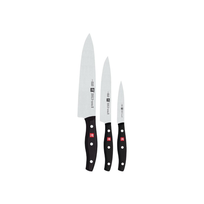 ZWILLING Couteaux à Cuisine 20 cm TWIN Pollux. Grâce au fil droit de sa lame, ce couteau est parfaitement adapté à la préparation de légumes. Le manche est conçu dans un design épuré et sobre à trois rivets sans jonctions gênantes.