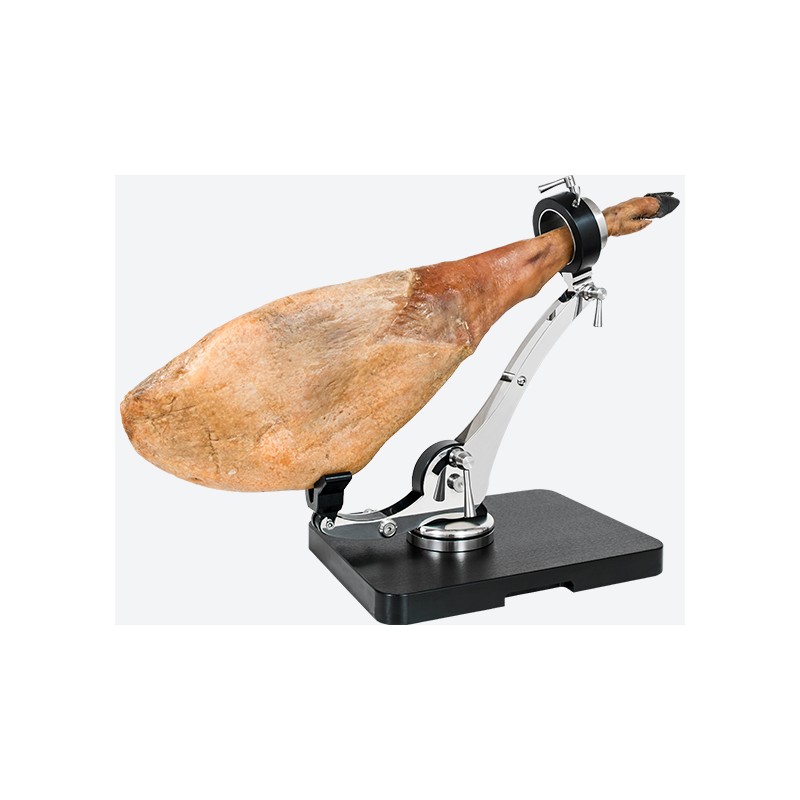 La structure de ce porte-jambon est inclinable, ce qui permet une oscillation à 80º pour ajuster le jambon à la position la plus confortable pour vous de travailler, grâce à la poignée réglable qui garantit une position ferme..