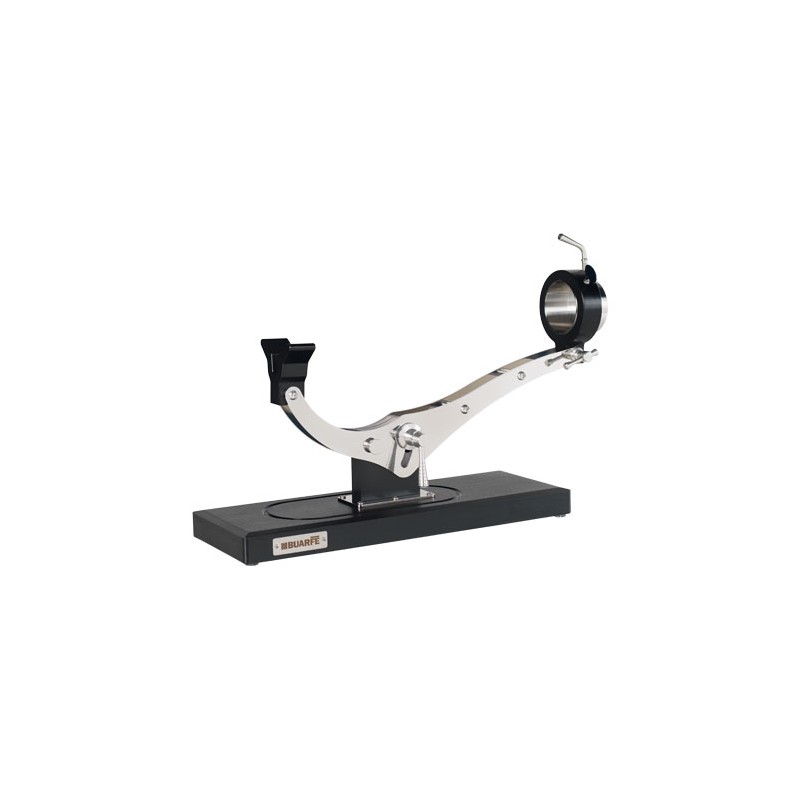 Élégant support de jambon professionnel, Reglable Tournant et de Balancier une série l'Élite de Buarfe, avec base dans un polyéthylène PE-500 un Noir et des ferrures en acier inoxydable Tournant. Est spécialement dessinée pour faciltar coupure horizontale et confortable. Les ferrures tournantes permettent de tourner le jambon sans la nécessité de le lâcher.