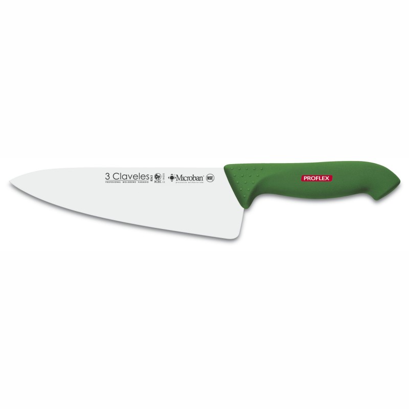 3 Claveles 8263 Faca Cozinheiro 20 cm 8" Cabo Verde, Faca de lâmina larga, fio liso, estável e forte. A faca multi usos para profissionais e cozinheiros aficionados à cozinha que limpa, corte e pica verduras.