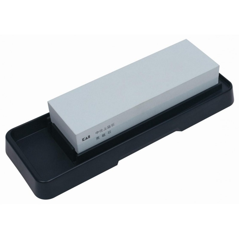 Kai AP-0305 Pedra Afiar Combinada Grão Médio 400/1000 com suporte para o afiado de facas. A pedra Kai Shun dispõe de 2 granulados: 400 grão medio para desbastar ou coregir inperfeciones e 1000 de grão fino para o acabamento mas fino do afiado. Fabricacion Japonesa KAI.
