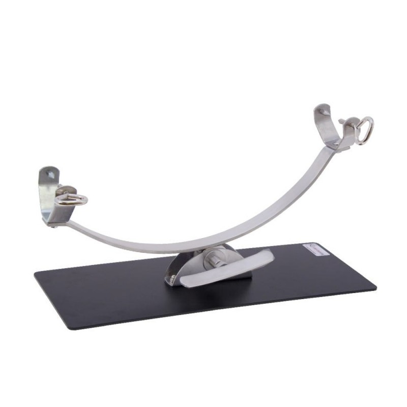 Tanto o suporte do casco como o joelho do presunto são em forma de V em aço inoxidável com uma ponta onde a perna do presunto fica perfeitamente ancorada.