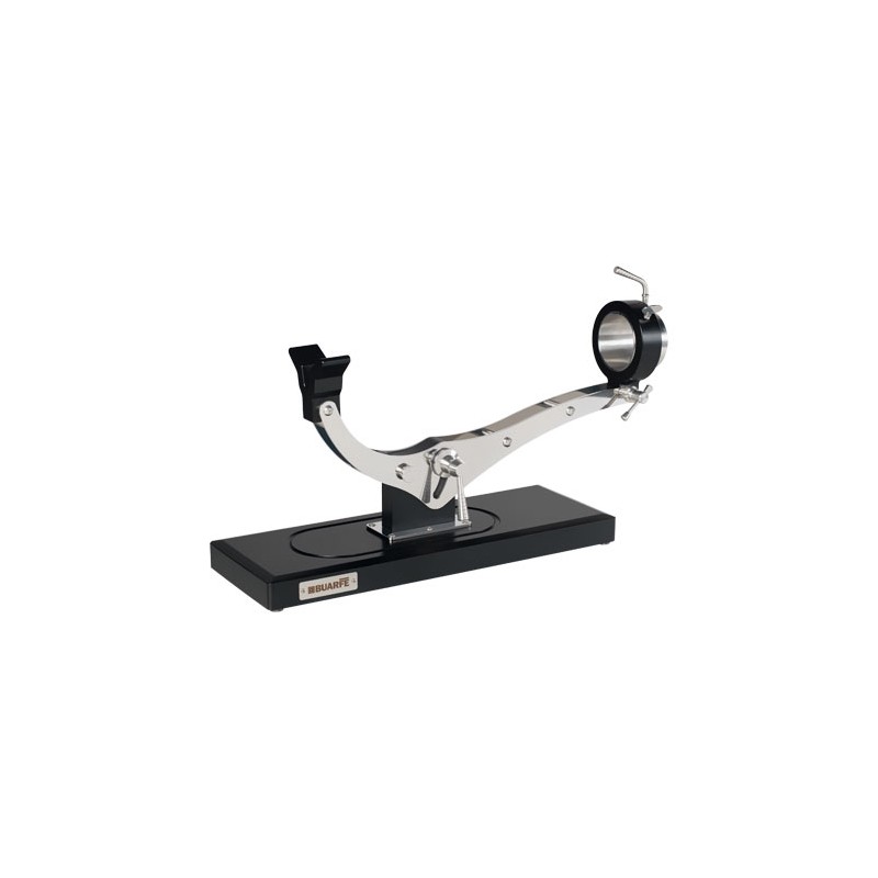 O suporte de presunto Buarfe ELITE, ao estar fabricado completamente em aço inoxidável AISI-304 e com todos os complementos do suporte em polietileno PE-500 negro, que ao ser fisiologicamente inerte, reúne todos os requisitos para estar em contato com os alimentos. Há dois tipos de acabamento, um com a base de madeira de tenha branca européia de primeira qualidade com terminação de laca ecológica e outro com a base de polietileno PE-500. A versão acabada completamente em polietileno negro (4220) permite que este modelo seja lavable, podendo introduzir na lava-louça sem nenhum problema